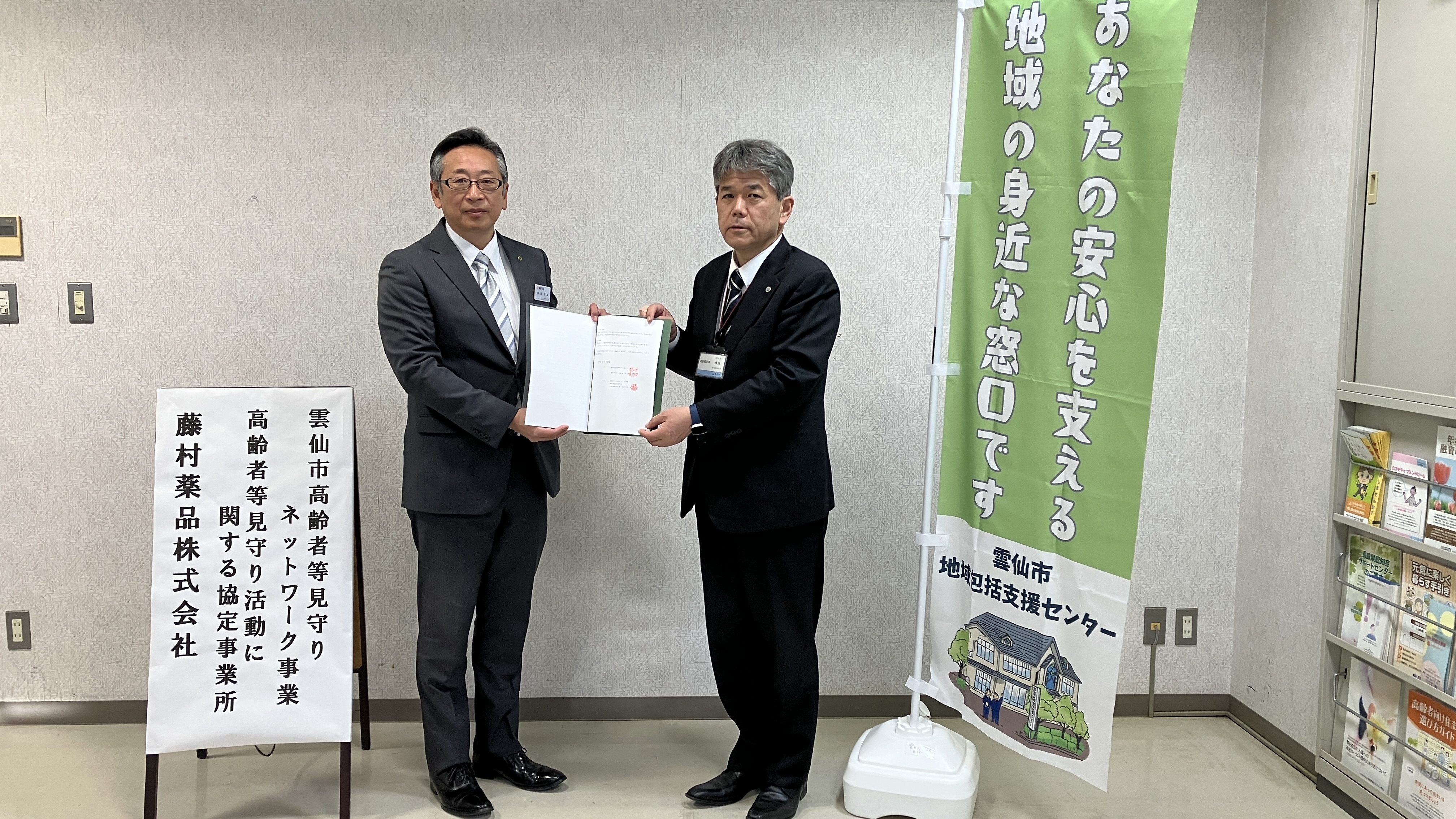 本協定は、雲仙市と藤村薬品株式会社が協力し、日常業務の範囲で高齢者等の異変を早期に把握し、必要に応じて市や関係機関へ連絡することで、高齢者等が住み慣れた地域で安心して暮らし続けられるようにすることを目的としたものです。